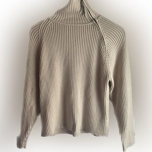 SPANNER ribbed knit funnel neck side zip beige pullover size large