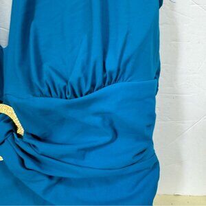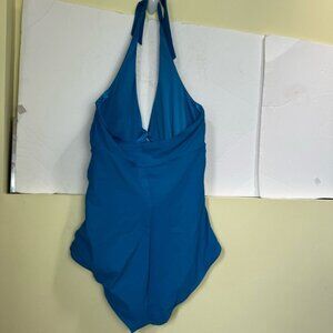 SPANX Bayside Halter Shaping 1Piece Swimsuit Ring Buckle Slimming Padded Blue 14