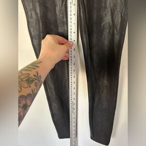 SPANX Faux Leather Pants Legging Stretch High Waist Shaping Black Tights Medium