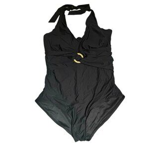 SPANX Bayside Halter Shaping One Piece Swimsuit Ring Buckle Slimming Padded Gathered Classic Elegant