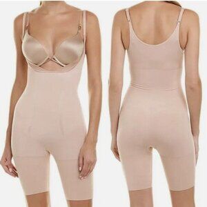 SPANX Slimmer & Shine Open-Bust Mid-Thigh Shapewear Bodysuit Womens L Rose Gold