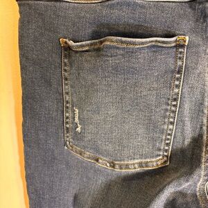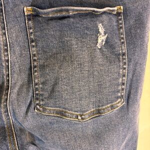 SPANX Sz M Pull On Jeans Skinny Distressed Mid-Wash Raw Hem High Raise Denim. NEW. Sexy and fun.