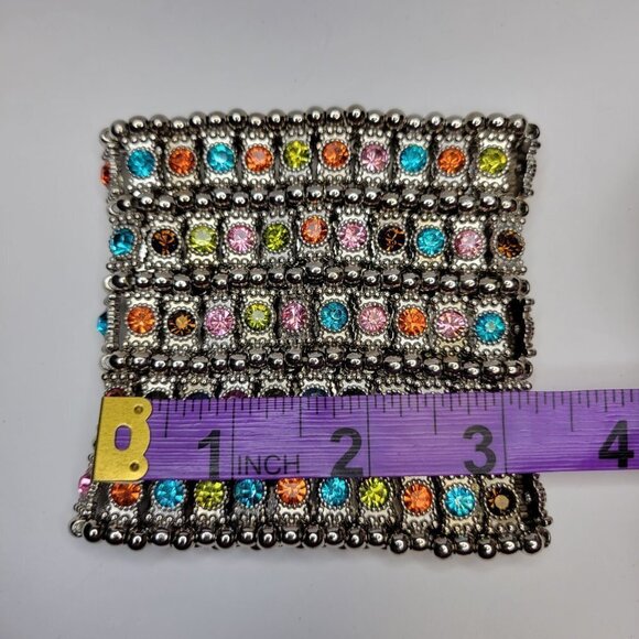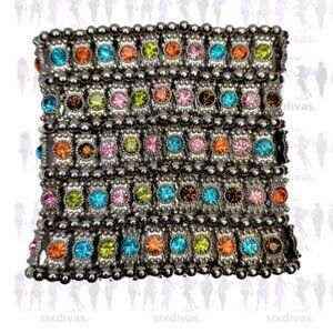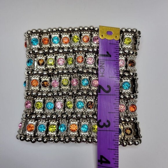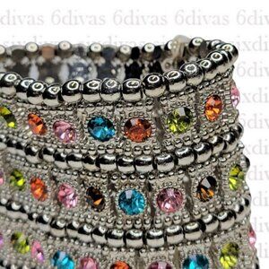 SPARKLING multicolor crystals multi layer stretch wide cuff bracelet