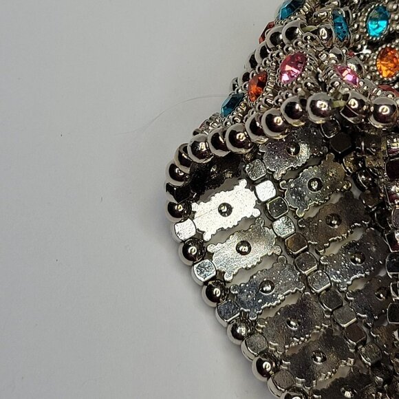 Lovely sparkling diamante crystals set in antiqued silver-plated metal links on a stretch cuff to create the ultimate head turner