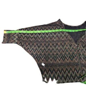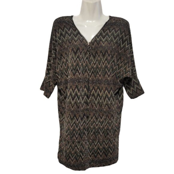 Glitter Brown Green Black Zig Zag print Pattern Tunic Top