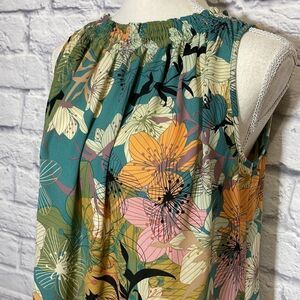 SPENSE Floral Print Sleeveless Elasticized Neckline Top Size Small