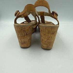 In good pre-loved condition! Super cute Sperry leather/cork wedge sandals. There are a couple of scuff marks on the insole (see photos). Otherwise in great condition.