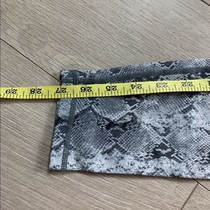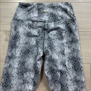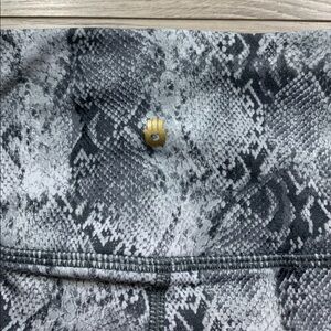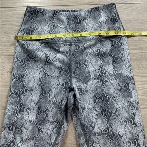 A snakeskin print adds exotic style to performance leggings featuring smooth, irritation-reducing flatlock seams and a supportive high waistband.