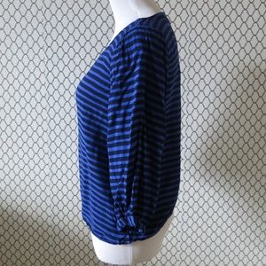 SPLENDID Elastic Waist 100% Rayon Blue Black Stripe 3/4 Sleeve Hi Lo Top Blouse - Size Petite Small