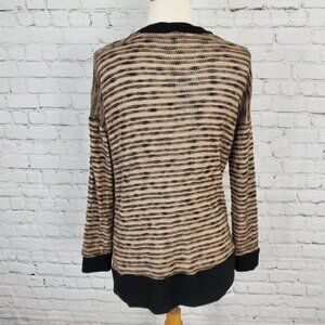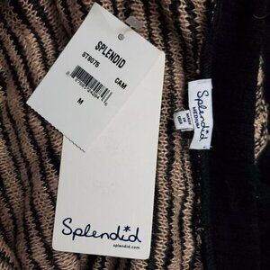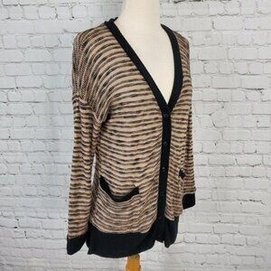 SPLENDID Tan Black Marled Striped Cardigan Sweater M NWT NEW