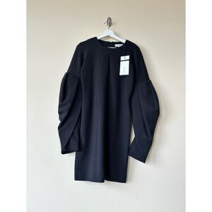 Feminine-fit and figure-hugging short dress in a woven cotton-jersey blend. Kimono sleeves add a three-dimensional dramatic feel.