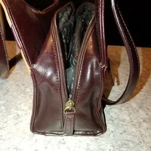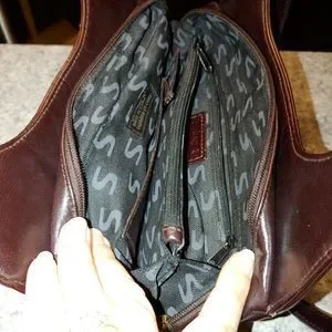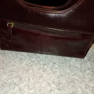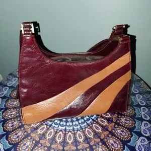 This beautiful soft handbag by Spring is 10" by 6.5" and features double handles 22" long. Zippered closure and retro style bag is calling your name!