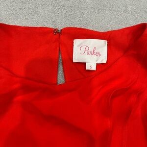 [S]Parker Bold Red Ruffled Front 100 Silk Shift Dress Fully Lined NWOT