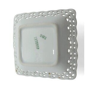 SQUARE Floral RETICULATED Small Bowl Dish Gold Accents Germany Vintage