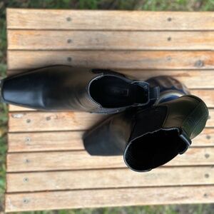 These stylish square toe boots are perfect for dressing up any outfit. These are ankle length pull on boots that are very comfortable for long wear.