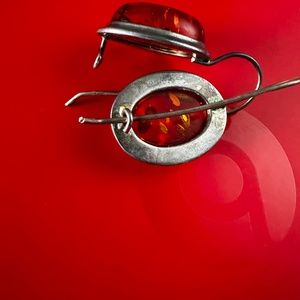 BEAUTIFUL SS & AMBER EARRINGS, SUBSTANTIAL SIZE