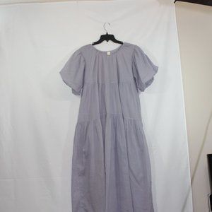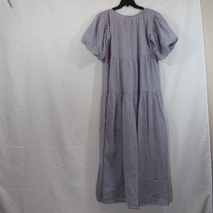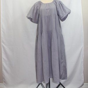 SS Women's Round Neck Puff Sleeve Boho style Ruffles Solid Dust Purple color Lined Midi Dress Medium -Large 100% Cotton ,Made with love in Indonesia ,Gently used