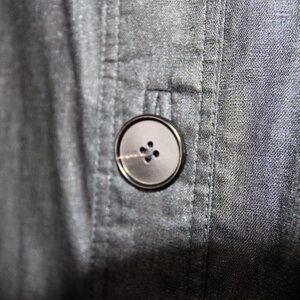 Long trench in paperweight coated linen. Diagonal welt pockets at front. Epaulets at shoulders. Pointed fly away yoke at back. Tie and belt loops at waist. High vent slit at center back hem. Delicate dry clean. 100% linen.
