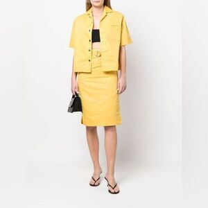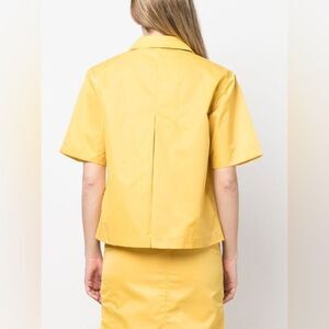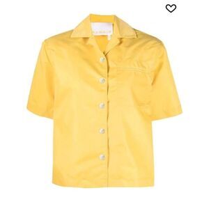 Bright-yellow recycled polyamide button-up short-sleeved shirt from REMAIN featuring front button fastening, short sleeves and straight hem.
