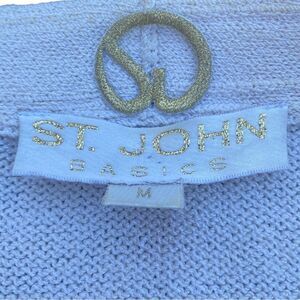 ST.JOHN BASICS CREAM , Santana knit OPEN FRONT LONGLINE CARDIGAN WITH FRONT POCKETS & CREST BUTTONS.