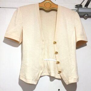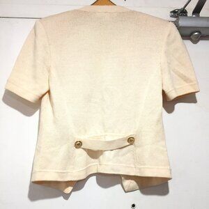 St. John Basics Knit Wool Sweater Jacket, Lightweight Size S, Color Cream, No Fabric Label, Wool Texture, Shoulder Pad, Back Strap Buttons, No Pocket, Closure Button Down, Good Condition, Relaxed Fit, Great Look, Great Fit.