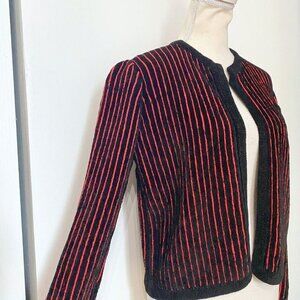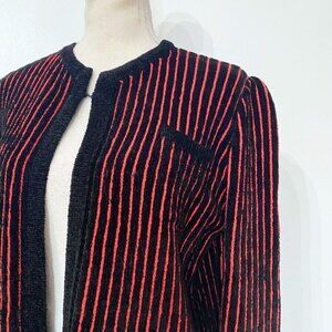 ST JOHN BY MARIE GRAY BLACK RED STRIPED CHENILLE KNIT CARDIGAN