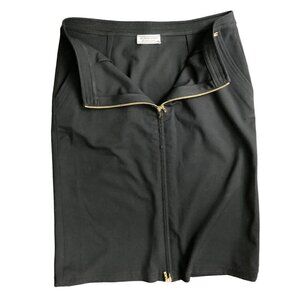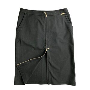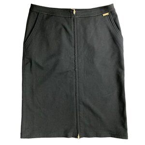 ST. JOHN Black Midi Pencil Skirt Exposed Gold Zippers US 12