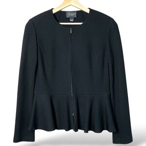 ST. JOHN CAVIAR Zip-front Sculpted Milano Knit Fit-&-flare Peplum Jacket Sz 10