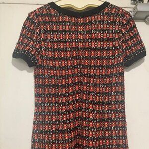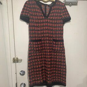 St. John Exclusively For Nordstrom V-neck Dress, Size 8, Multicolor Knitting Patterns, 47% Rayon, 33% Cotton, 11% Polyamide, 3% Wool, 3% Cashmere, 2% Polyester, 1% Silk, Front Pockets, Closure Back Zipper, Front, and Sleeve Small Pulled, in Good Condition, Midi Dress, Great Look, Great Fit.