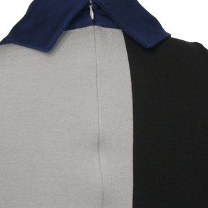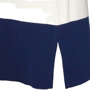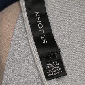 ST JOHN Multi Color, Black / Blue /Grey/ Cream / color block knit sweater tunic Size 4. In excellent pre-owned condition. Features: fold collar, long back zipper, 5" side slits, 53% wool, 47% rayon, This all season tunic is a great wardrobe staple. Check tags for care instruction. Check measurements before purchase