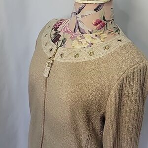 ST. JOHN SPORT Wool Rayon Blend Rivet Zip Up Jacket Ribbed Classic