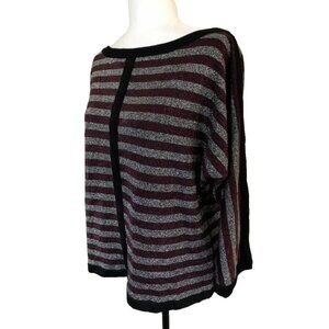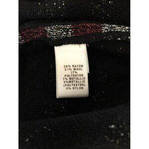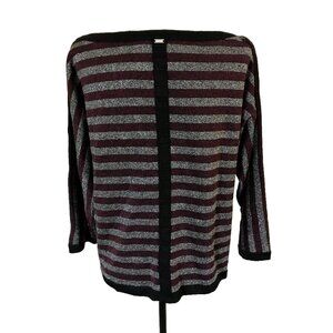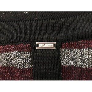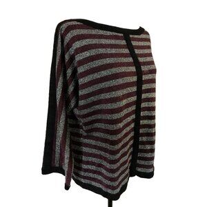ST. JOHN Wool Rayon Sweater Yellow Label Medium Silver Burgundy Metallic Thread