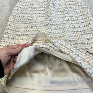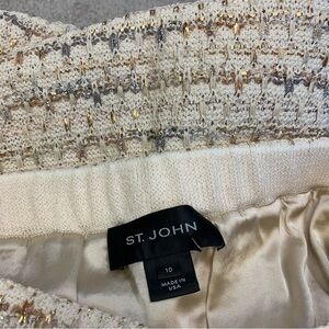 St. John cream metallic gold tweed knit fringe pencil skirt Sz 10 stretchy