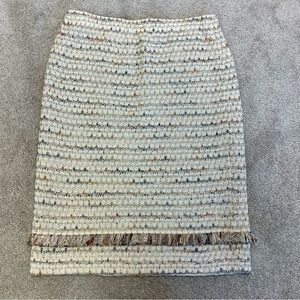 ST. John cream metallic gold tweed knit fringe pencil skirt Sz 10 stretchy
