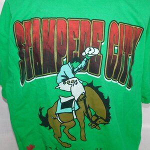 STAMPEDE CITY Calgary Mens 2XL Green Graphic T Shirt Cowboy Horse Rodeo