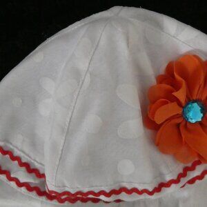 STAR CHILD | 46 cm | Elegant White Floral Hat | Orange Flower W Blue Gem