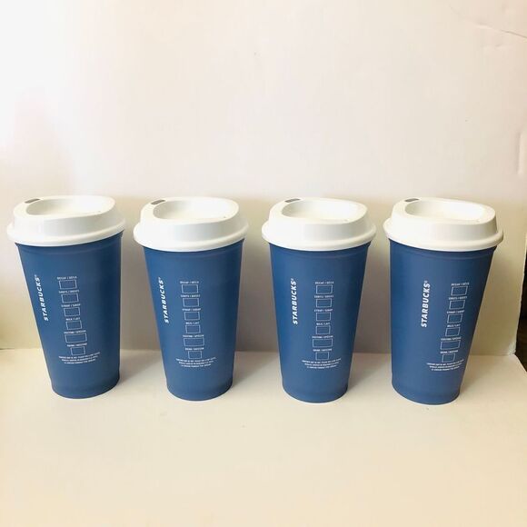 STARBUCKS Color Changing Holiday To Go Cups x 4 New Lids / Sz 16 oz (473 mL)