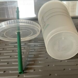 STARBUCKS PLASTIC DRINK TUMBLER WITH LID AND STRAW…. Unused Plus shipping