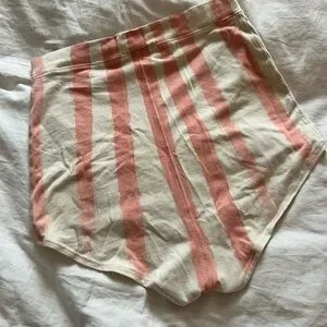 Charming hot pants with pink and cream stripes. Perfect for lounging.