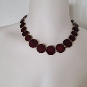 Dark red statement necklace.