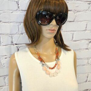 STATEMENT NECKLACE - Beaded, peach/orange/silver