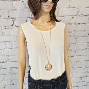 STATEMENT NECKLACE - Long gold and pink beaded medallion