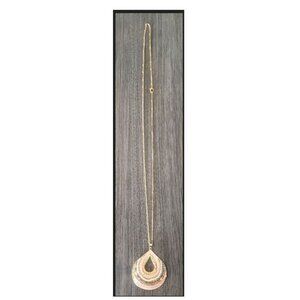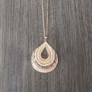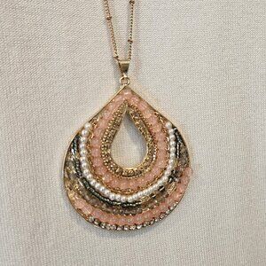 STATEMENT NECKLACE - Long gold and pink beaded medallion