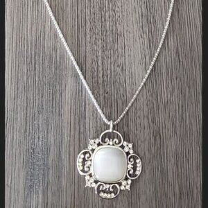STATEMENT NECKLACE - Long silver jeweled medallion at base
