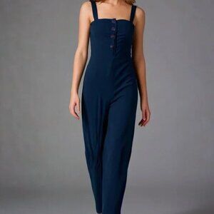 STAUD Boats At The Dock Button Up Square Neckline Jumpsuit Deep Blue