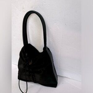STAUD Felix Shoulder Bag Nylon Leather Trimmed Ruched Shell Tote Logo Zip Pocket