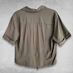STAUD Olive Green Button-Up Shirt with Front Tie - Size M