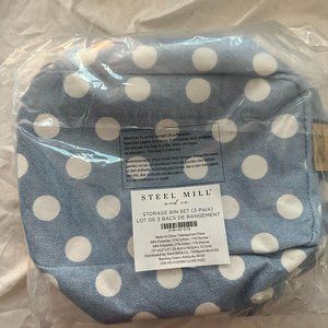 Brand new STEEL MILL & CO. set of 3 blue polka-dot storage/organization bins.