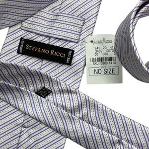 🆕STEFANO RICCI XL White/Purple Striped Silk LUXURY Tie ITALY