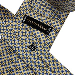 STEFANO RICCI Yellow/Blue Geometric Silk LUXURY Tie ITALY